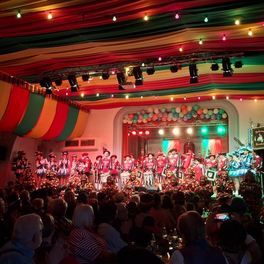 90 Jahre, fulminanter Beginn, Farbenpracht gleich zu Anfang, 3 Wochenenden, vor ausverkaufter Halle. Mit Prinz, Elferrat, Prinzengarde und Eichos eröffneten wir das Prunksitzungsprogramm.