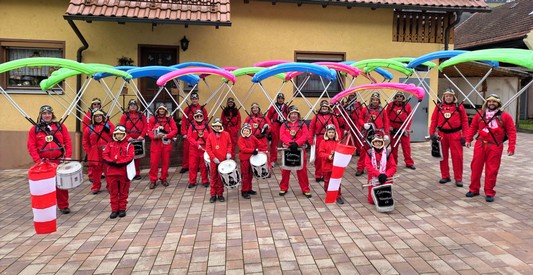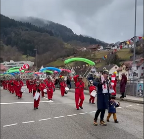 Fasntssonntag - Nach 10 Jahren gabs ihn wieder, den großen Jubiläumsumzug über Bundestraße und durchs Ort. Und unsere 22 Fallschirmspringer waren vorne weg.