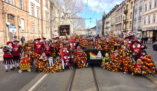 Fasntdienstag - Auch die Fasntzünfte und Karnevalsgesellschaften in Heidelberg veranstalteten einen großen Umzug, auf 2,9 km schurrstracks gerade aus direkt durch die City und Altstadt. Wir waren, gemeinsam mit den Eichos der KG Hohle Eiche, 50 der 1950 Mitwirkenden. Dies war der erste 100.000er Umzug des Jahres.